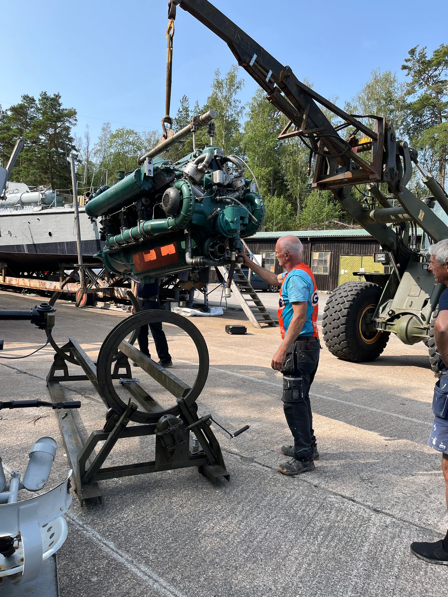 Mittmotorn samt pjäsen sattes på plats, och med detta kommer så klart även jobbet med att skruva av och på alla 264(?) bultar som håller maskinkappen på plats, dra kablar, montera shims, och täta alting efteråt.